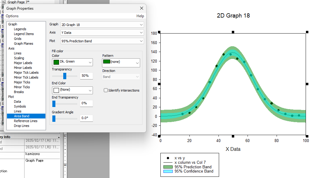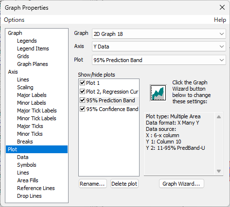 Graph Properties の Plot セクションを見ると、予測区間と信頼区間はそれぞれ独立したプロットとして構成されていることがわかります。