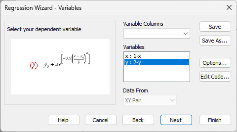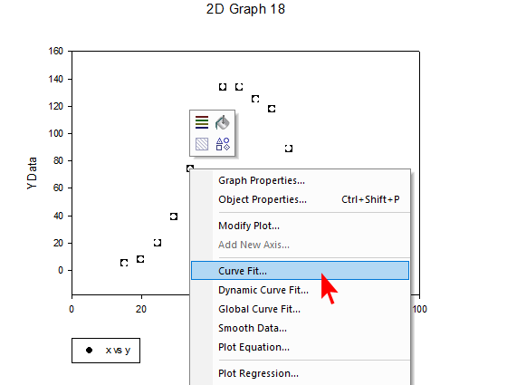 プロットを右クリックして Curve Fit を指定します。