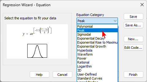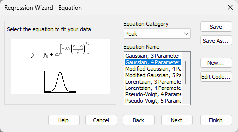 Gaussian, 4 Parameter を選択して Next をクリックします。