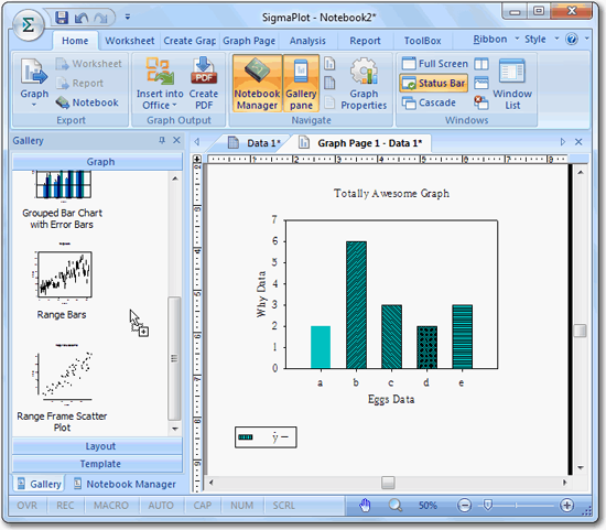 例えば、ここで作成した棒グラフ (タイトル:Totally Awesome Graph) に特別な愛着を抱いているとしましょう。これに対して行ったすべてを好ましく感じ、将来のグラフで使うためにも、これらの属性を全て保存しておきたいと考えたとしましょう。