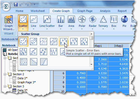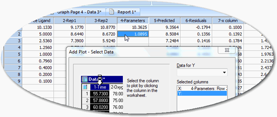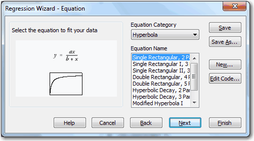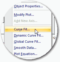 お持ちのデータに対する曲線のあてはめは、科学分野のグラフで最も必要とされる機能のひとつです。SigmaPlot には、100以上の曲線が用意されていますが、ユーザー独自の曲線を追加することもできます。