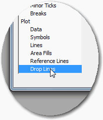 プロットのデータポイントが表示されていない場合、ドロップラインを追加して確認することができます。