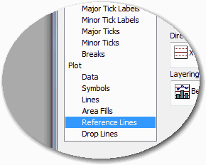 最後に基準線 (reference line) を使用して、”a” パラメータの値をプロットします。SigmaPlot では、基準線 (reference line) は統計値または指定された定数で計算された値を示すために使用します。