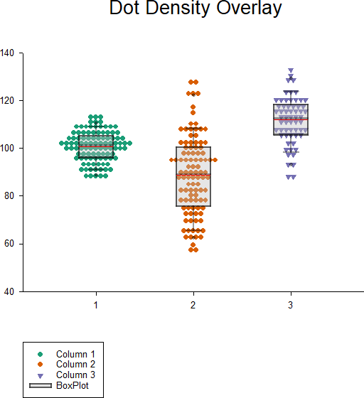 例えば、列1,2,3に異なる分布のデータを以下のように配置します。