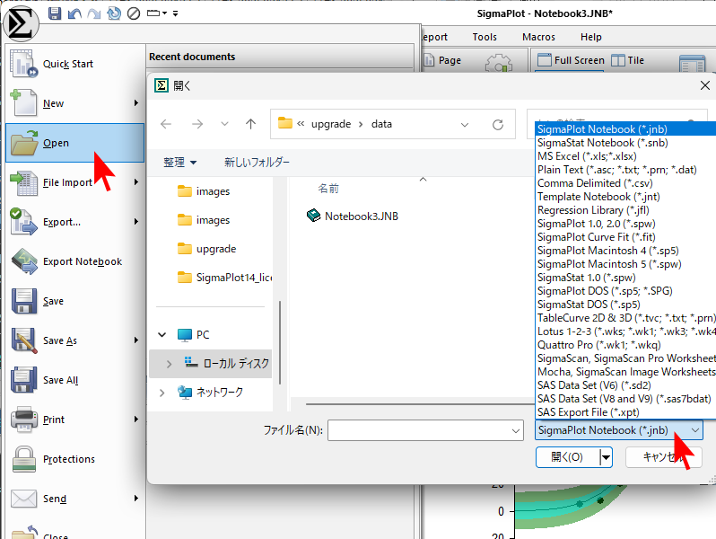 SigmaPlot のノートブックファイル jnb は、上位互換性があります。旧バージョンの SigmaPlot で作成されたデータは、最新バージョン 16 でも問題なく読み込むことができます。