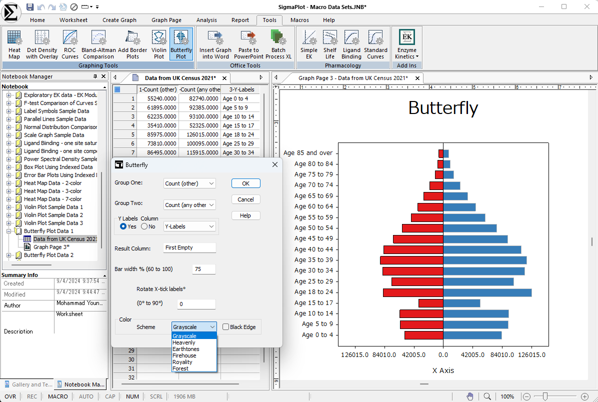 バタフライプロット (トルネードチャートとも呼ばれます) は、2つのデータセットを並べて比較するために使用される棒グラフの一種です。