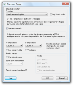 すでに計算された EC50 値に加えて、EC40 や EC60 などユーザーが入力した他の EC 値をただちに計算できます。5パラメータを持つロジスティック関数2種類の追加に加え、搭載されたダイナミック・カーブフィッティング機能が、困難なカーブフィッティング問題の解決を支援します。