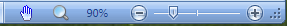 ステータスバーに追加されたズーム、パン、+/- コントロール、ズームダイアログ&スライダー