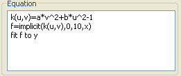Implicit 関数による陰関数のカーブフィット。フィットモデルから暗黙的に定まる予測値を計算できます。