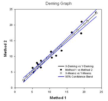 xy 両変数の誤差を考慮するデミング回帰:測定法の比較に利用します。
