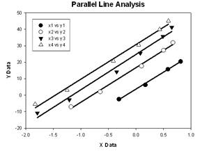 線形回帰の傾きと切片が異なるものであるかを判断する平行線分析 (Parallel line analysis)