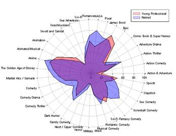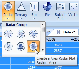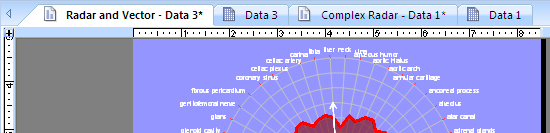 各種レーダーグラフ:散布図、ライン、ベクトル、領域、ラインと誤差帯
