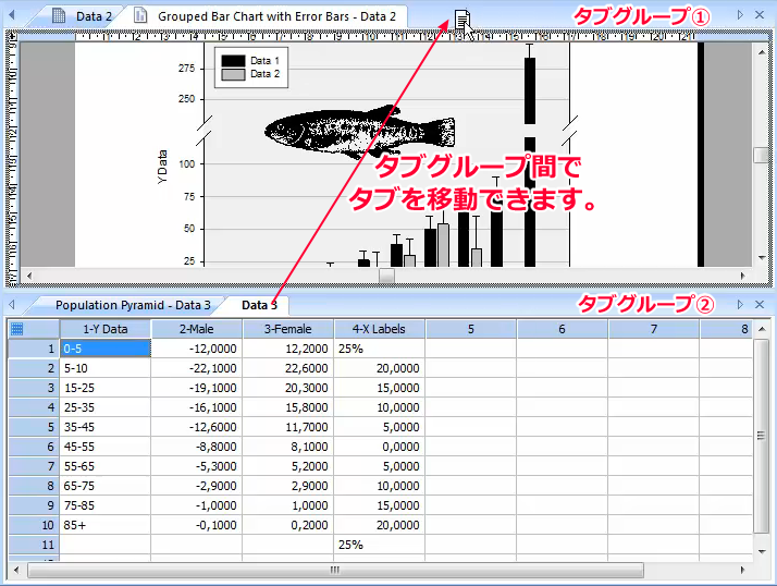 ウィンドウを縦または横方向のタブ形式でグループ化して開くことができます。グループ化することでウィンドウを容易に比較したり、効率よく整理することができます。