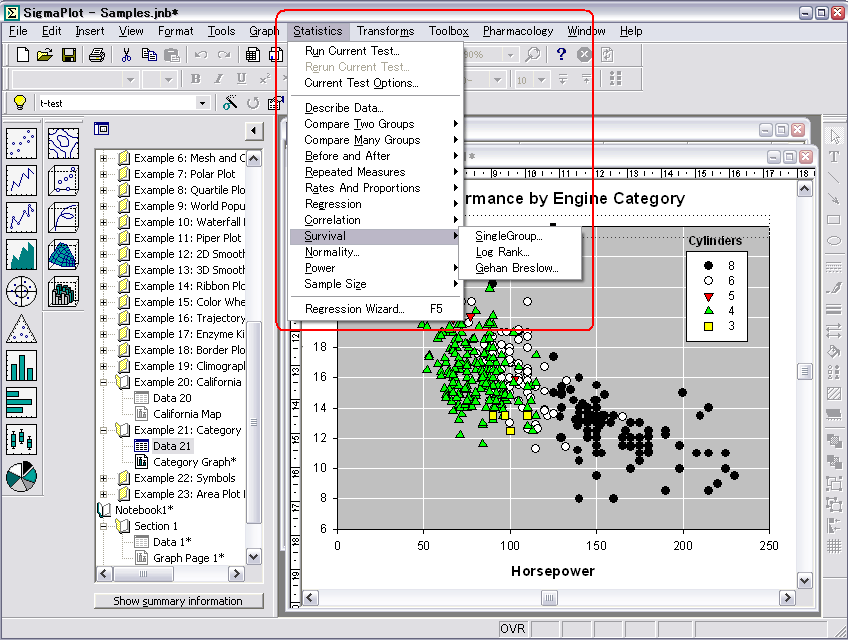 SigmaStat 3.1 がインストールされていれば、SigmaStat の統計的検定が SigmaPlot の “Statistics menu” から利用可能となりました。