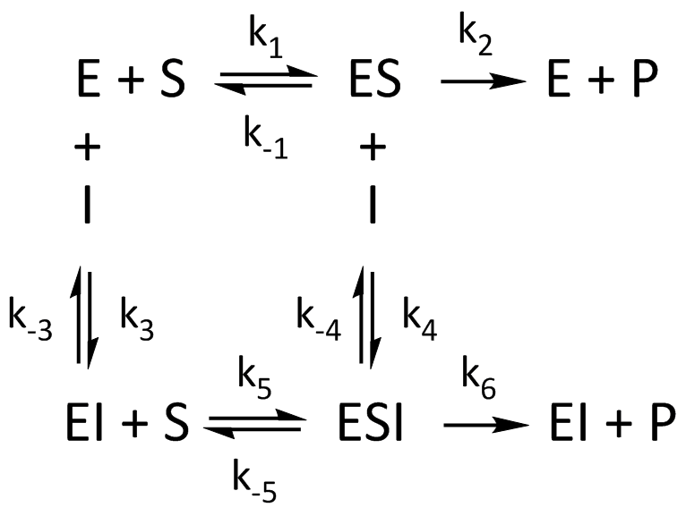 つまり、阻害剤を含む複合体(ESI)から反応生産物が生成されないケースが Full、生成されるケースが Partial です。