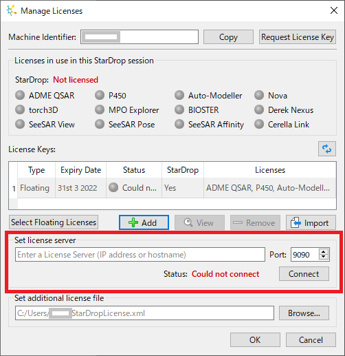 Set License server: の