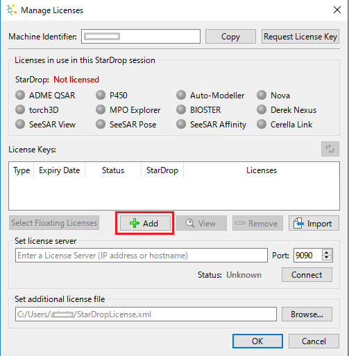Manage Licenses の画面で、Add ボタンを選択します。