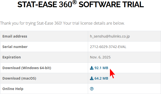 - Stat-Ease 360 インストーラのダウンロードページが表示されます。