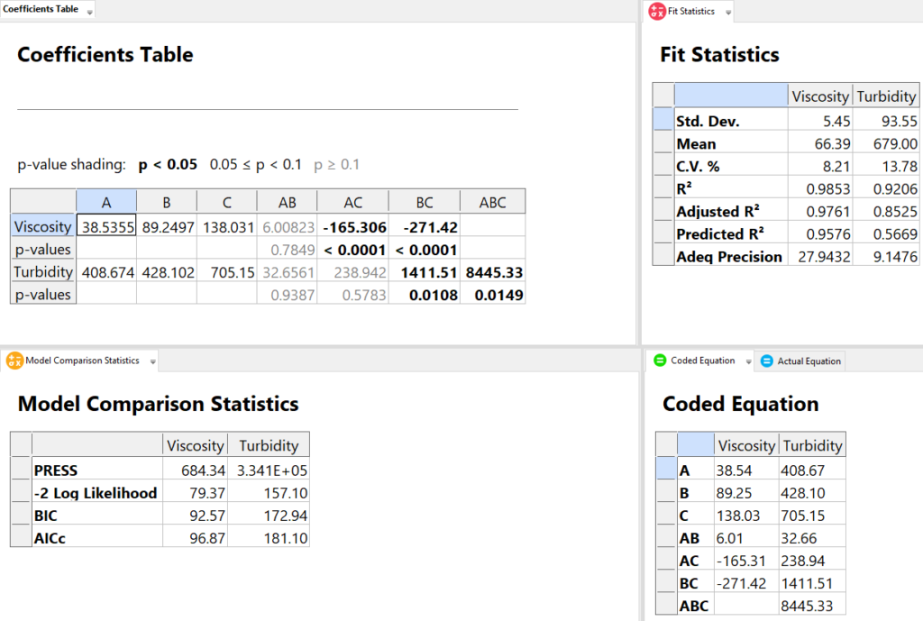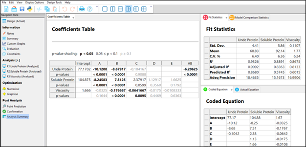 分析サマリー表に Lack of Fit と Curvature の p 値が追加され、すばやく比較できるようになりました。