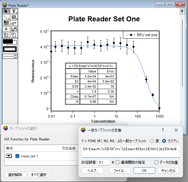 ユーザー定義関数によるカーブフィッティング、データ選択ツール