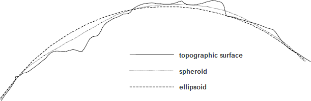 あるデータをローカル測地系 (Local Datums) に変換することで、それがどのように変化するかを理解するためには、楕円体 (ellipsoid)、回転楕円体 (spheroid)、および、これらと測地系 (datum) との関係を理解する必要があります。平均海面 (mean sea level) の位置を基準とした理想的な円形の物体が回転楕円体 (spheroid) です。これは、地球上のどの位置をとっても一定ですが、実際の形状は、場所によって重力場が異なることから局所的に様々な起伏が存在します。