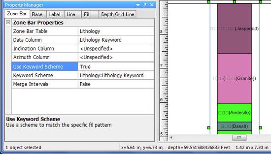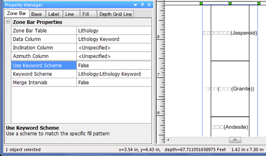 回答:Zone Bar や Lithology Log 内の隣接した同一のインターバルは、マージすることができます。デフォルトでは、Strater は、このようなインターバルがあった場合は別々に考えます。これらをマージするには、柱状図を選択し、Property Inspector で Merge Intervals オプションを True (有効) にしてください。
