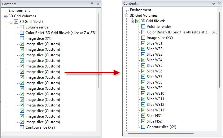 お持ちのコンテンツを整理しましょう!3D View でレイヤーの名称を変更できるようになりました。これは、3D グリッドを使用して複数の画像やコンタースライスを作成するときに特に便利です。コンテンツウィンドウでどのレイヤーが必要なのかを推測したり、一つ一つクリックしたりする手間が省けます。レイヤー名を一意に識別できるように変更すれば、目的のレイヤーをすぐに選択できます。