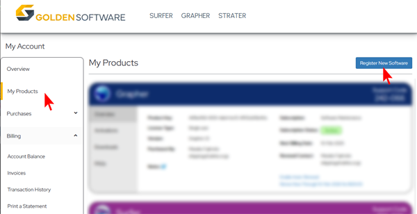 お持ちの製品のユーザー登録を行っていただくと、テクニカルサポートを無償で受けたり、ライセンスを容易に管理することができるようになります。登録された情報が使用されるのは Golden Software 社の内部に限られ、外部に流出することはありません。