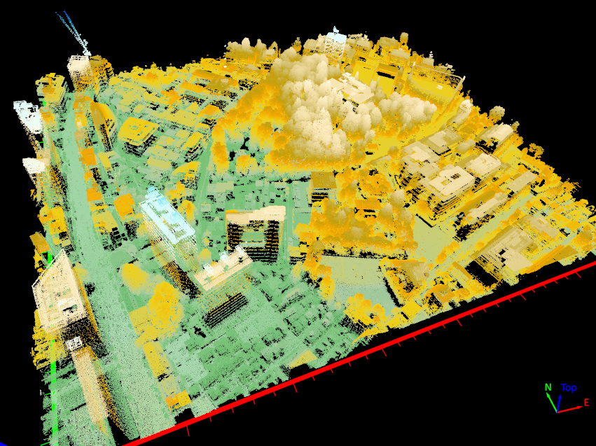 LiDAR データ (建物や樹木を含めた全ての範囲) をグリッド化するには、Point Cloud 用に用意された Create Grid コマンドを利用すると、Surfer に標準装備されている各種グリッド手法にくらべて非常に高速にグリッドデータを作成することができます。
