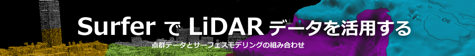 近年のドローンの普及にともない高精度な地形測量をはじめ、農業、建設現場、考古学的調査など幅広い分野で LiDAR データの活用がなされています。国内でも幾つかのサイトで LiDAR データが公開されています。ここでは、地形のサーフェスモデリングや GIS を備えた Surfer を使った LiDAR データの活用法を紹介いたします。