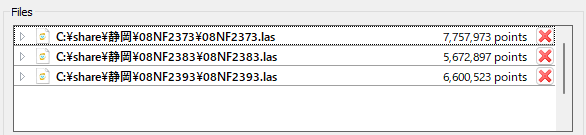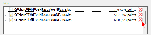 - ポイント数の右側にある X ボタンをクリックすると、ファイルリストからそのファイルが削除されます。