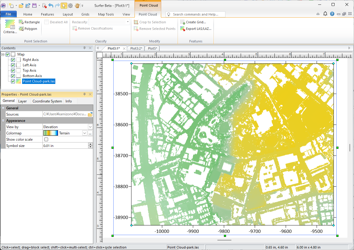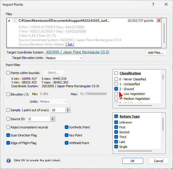 土地として分類された情報のみが Point Croud として取り込まれます。