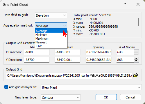 たとえば、1,000 万のデータ ポイントを含む LAS ファイルがあるとします。もちろん、クリギングなどの一般的な手法を使用することで柔軟性と視覚的に富む魅力的なマップを作成できることは良く知られるていますが、このアプローチでグリッドを生成するには多くの時間がかかる場合があります。時間に追われ、レポートを迅速に作成する必要がある場合には、クリギングやその他の従来の方法を使用して Point Cloud データをグリッド化するのは効率的ではありません。