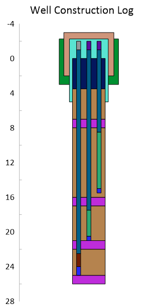 Grapher チームが作成した添付のスクリプトとデータファイル(下記参照)をダウンロードして、標準的な井戸構造図を複製してください。