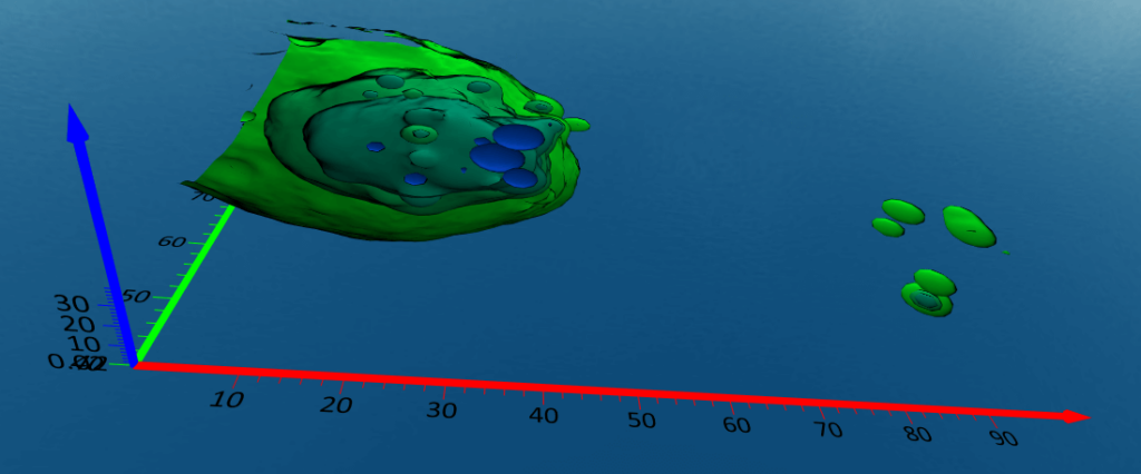 分析をさらに深めて、連続的な点データ(例:汚染濃度)を 3D プルームとしてモデル化することができます。これには、点データをインポートし、3D グリッド(ボクセル)を作成し、等値面を生成して汚染レベルを視覚化することが含まれます。