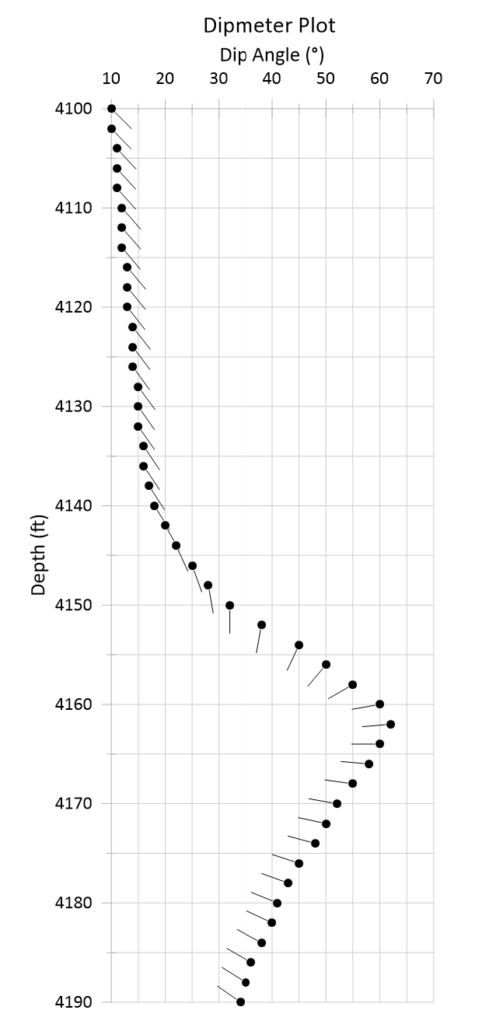 Grapher は、深度ログ (柱状図) やタッドポールプロット (tadpole plots) といったボーリング孔データの技術的な 2D 表示に最適です。これらは、折れ線グラフ/散布図とクラス散布図を使用して作成します。
