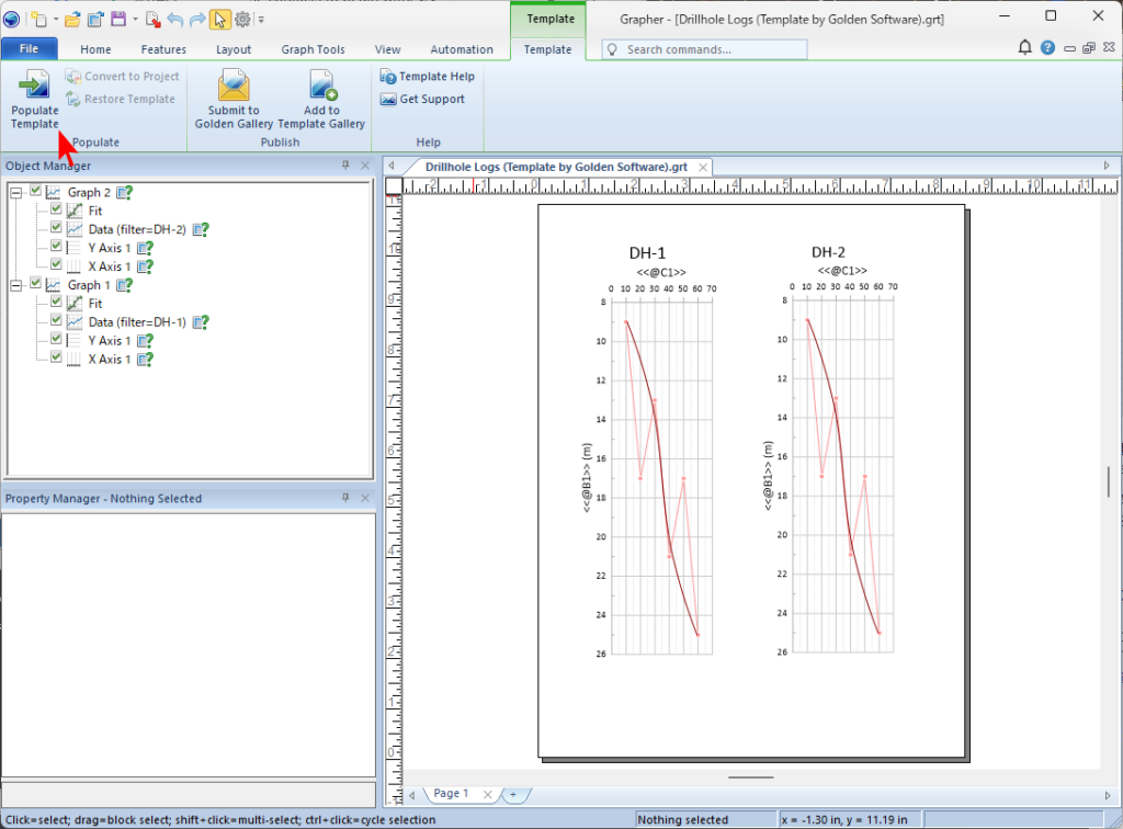 - Template | Populate Template をクリックして、テンプレートにお持ちのデータを読み込みます。