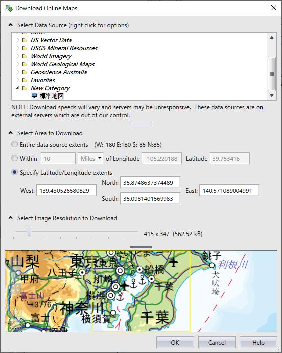 地理院地図は基本的にベースマップ (画像データ) ですので、グリッドデータ (GRD) として保存することはできません。