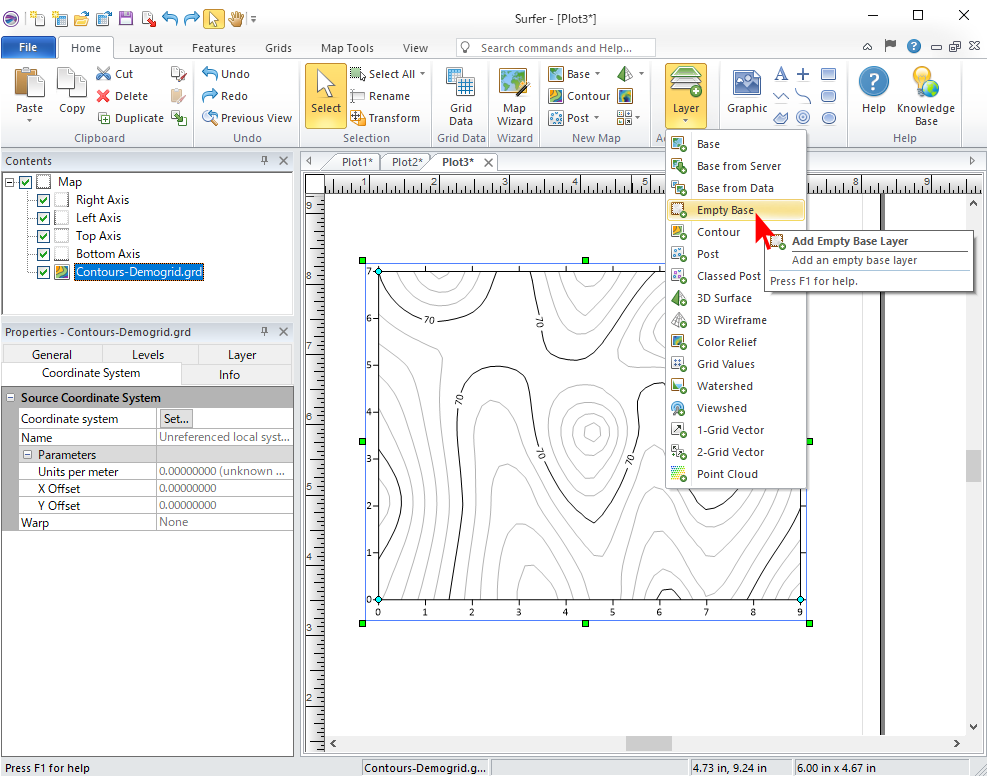 まず、プロットページに Grid データをもとに作成されたマップ (Contour マップ等) を用意してください。