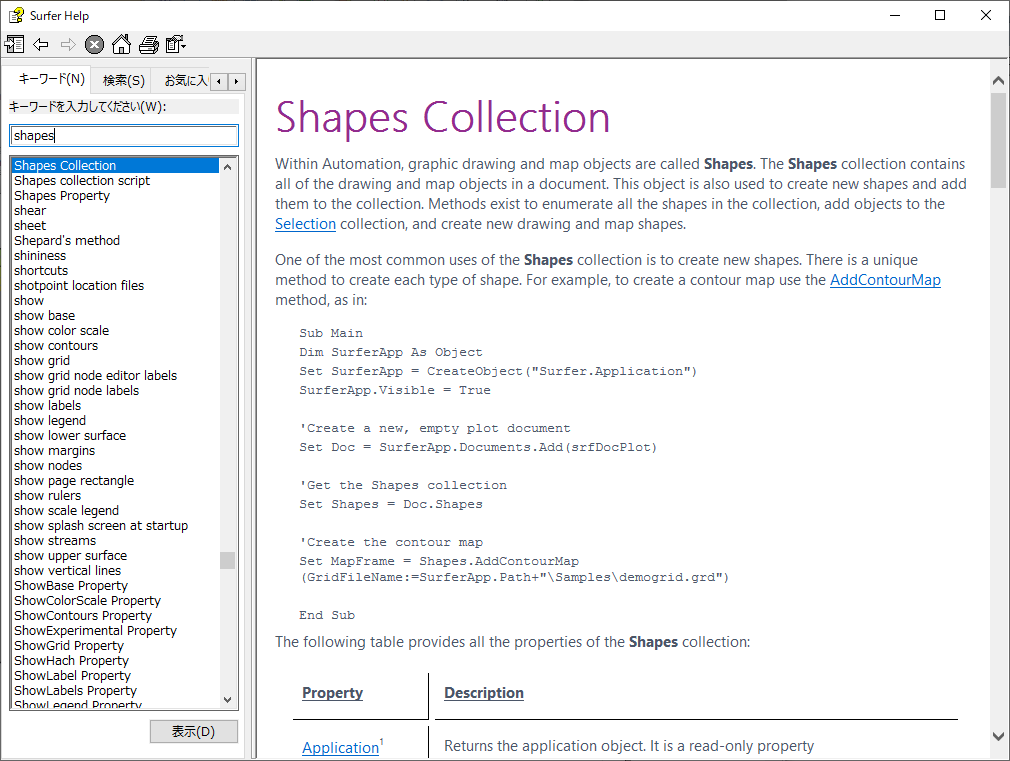 VisualBasic をご存じであれば、Surfer の Help から利用可能なメソッドやプロパティを検索できます。