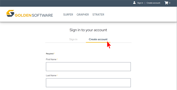 アカウントを初めて作成するお客様 (new Golden Software customer) の場合: