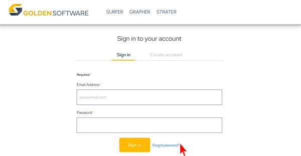 自分の Golden Software My Account パスワードが分からない場合は、以下の手順に従ってパスワードをリセットしてください: