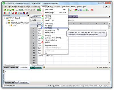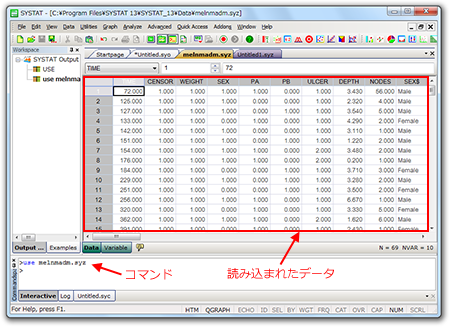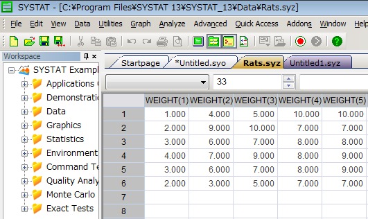 1. SYSTAT_13 フォルダの Data フォルダにあるサンプルデータから Rats.syz ファイルを開きます。