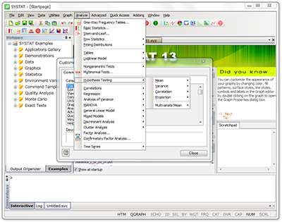 一例として Analyze メニューの Hypothesis Testing ボタンを選択してみましょう。