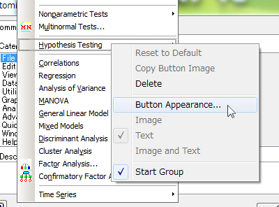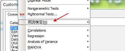 10. 以上で、Hypothesis Testing と表示されていたボタンを「仮説検定」ボタンとして Analyze メニューの上位に配置することができました。