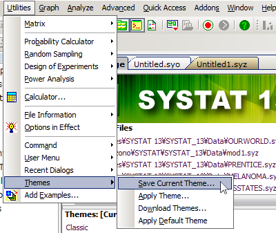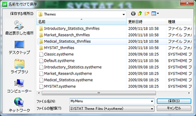2. ファイル名をたとえば MyMenu として保存しましょう。SYSTAT の テーマファイル形式 *.systheme ファイルとして保存されます。