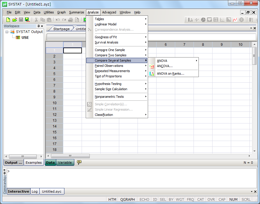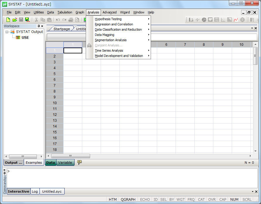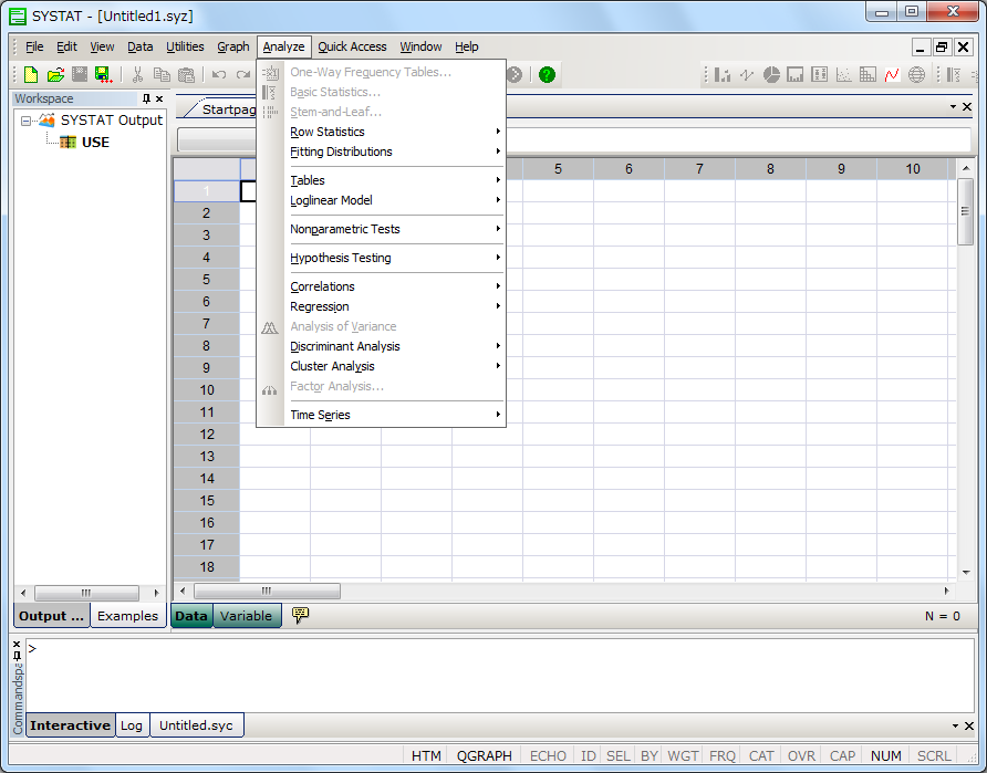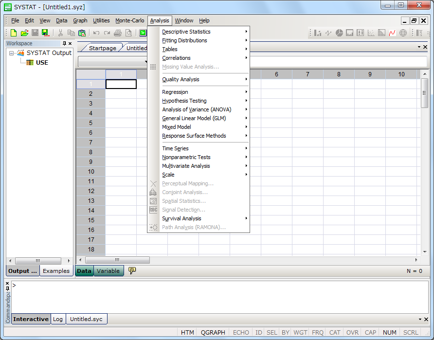 SYSTAT にはデフォルトのメニュー配置以外にも、医療やマーケティングなど特定分野に特化した機能をまとめたテーマがスタートページにあらかじめ用意されています。