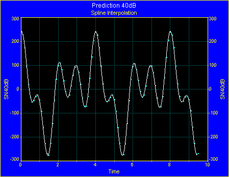 - Cubic constrnd オプションは、スプラインの振れを最小に収めていることを除いて、Cubic オプションとよく似ています。ノイズの多いデータに対してキュービックスプラインを適用したとき見られる大きな振れは、この方法では発生しません。スプライン曲線は、同様にデータポイント上を通過します。