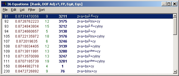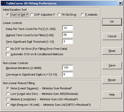 TableCurve 3D は、フィッティングを再現するために必要な情報は自動的に保存しますが、フィッティング結果のすべてを保存するわけではありません。
