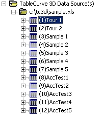 - OK ボタンを押すと、TableCurve 3D Explorer(メインウィンドウ左側セクション)にデータが追加されます。